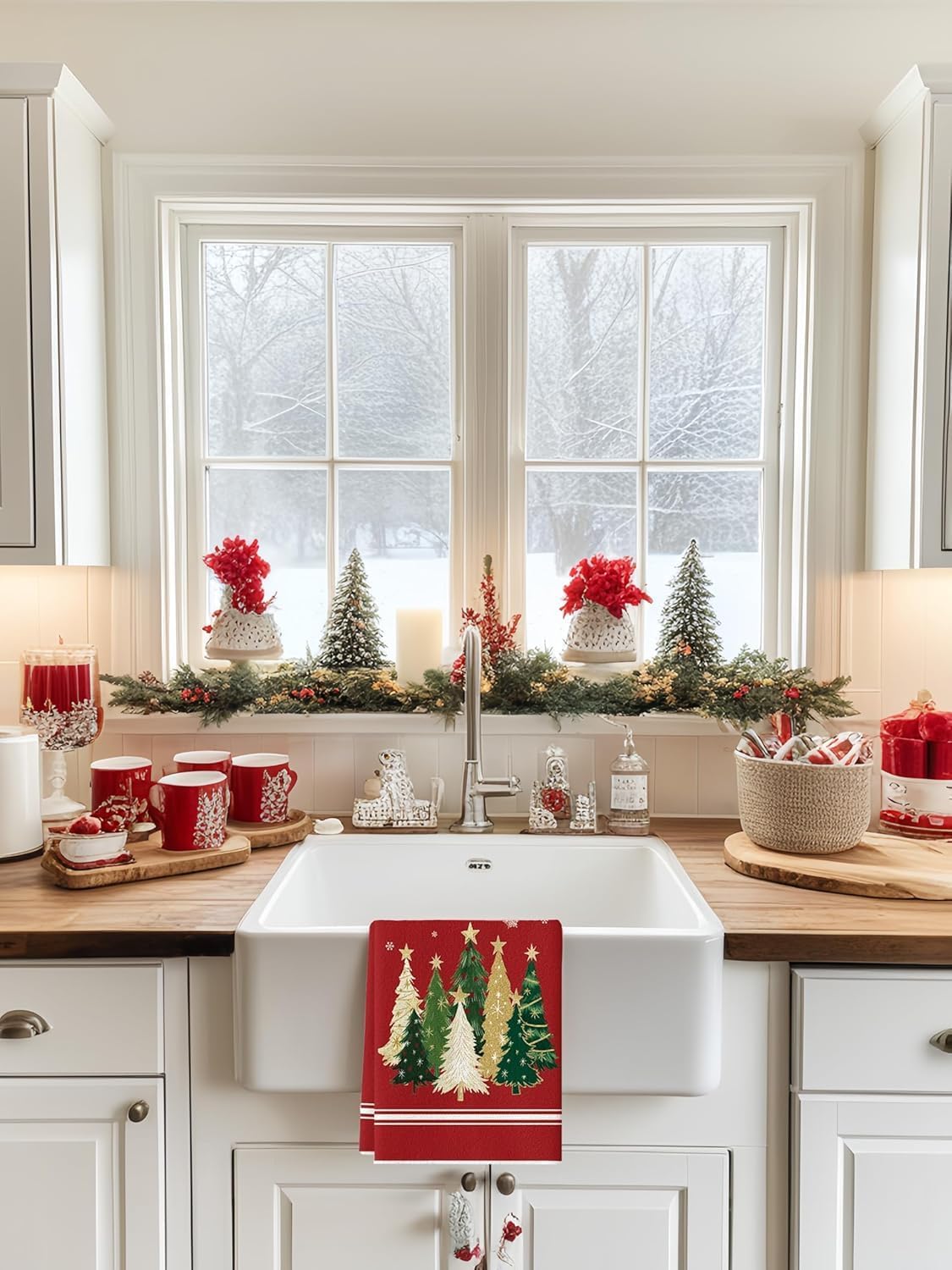 About this item Festive Design: Set of 2 Christmas-themed kitchen towels featuring vibrant red and white colors with embroidered trees... Read more