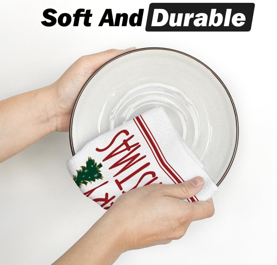 2-Pack Happy Christmas Tree Towels - Super Absorbent Microfiber, Odorless Fabric, Festive Red & White Design with Snowflakes, Perfect for Home Decor, Hand Towels for Home, Christmas Decor