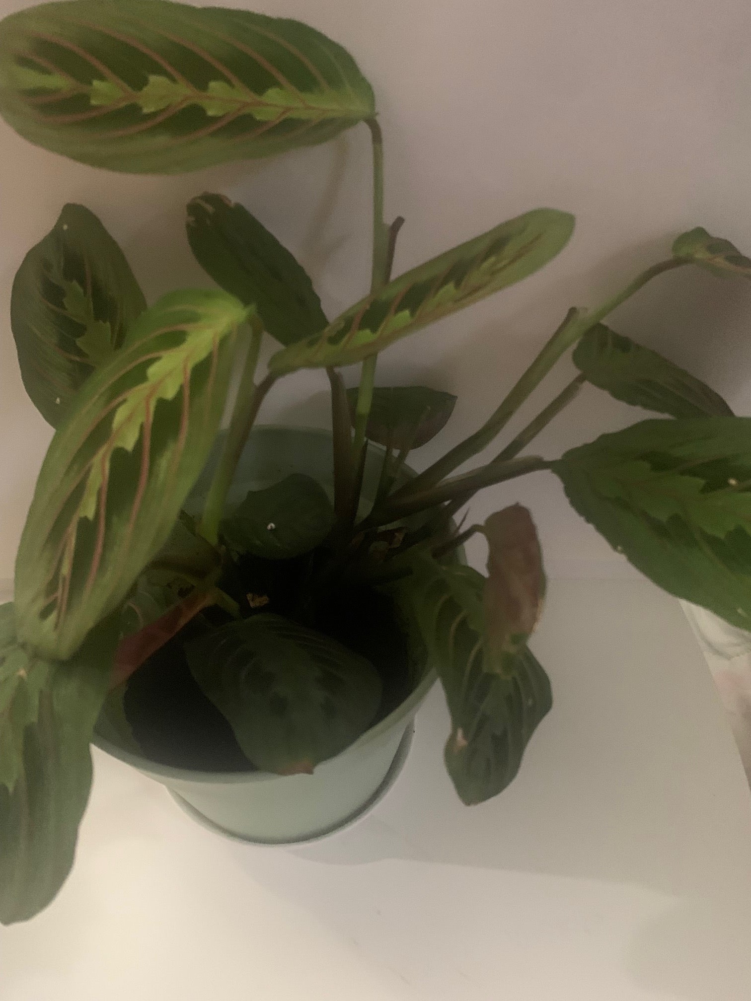 Enjoy the green leaves with unique stripe Maranta Prayer Plant. Keep in bright position avoid direct sunlight. Fertilize once every 2-3 weeks Keep soil moist, don't allow to dry out.